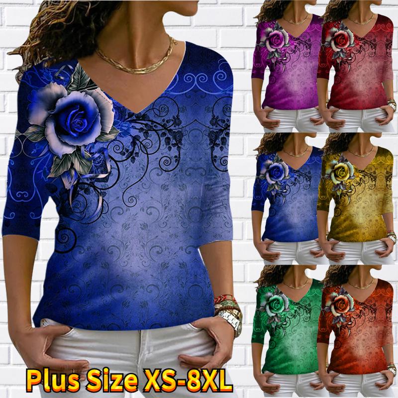 Женские осенние футболки с длинными рукавами с цветочным принтом «Роза на груди», свободные футболки с v-образным вырезом размера плюс, топы, удобная блузка — купить товар онлайн с бесплатной доставкой по всему миру!