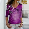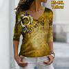 Женские осенние футболки с длинными рукавами с цветочным принтом «Роза на груди», свободные футболки с v-образным вырезом размера плюс, топы, удобная блузка