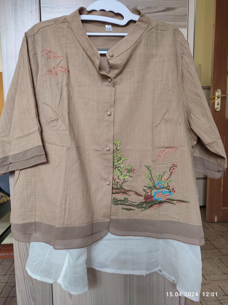 Пока новая к телу колючее, сильно просвечивающая, как марлевка, но плотнее и блестящая. Я ее брала для двойки, буду комбинировать, носить буду, даже не перешивая, .подойдёт до 54 разм