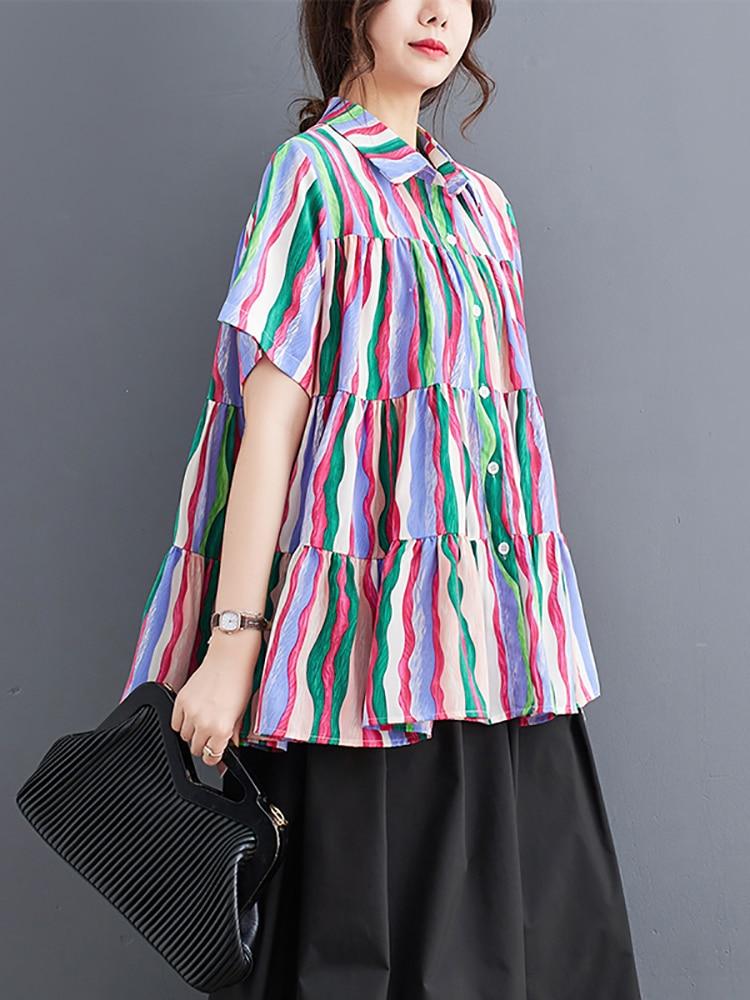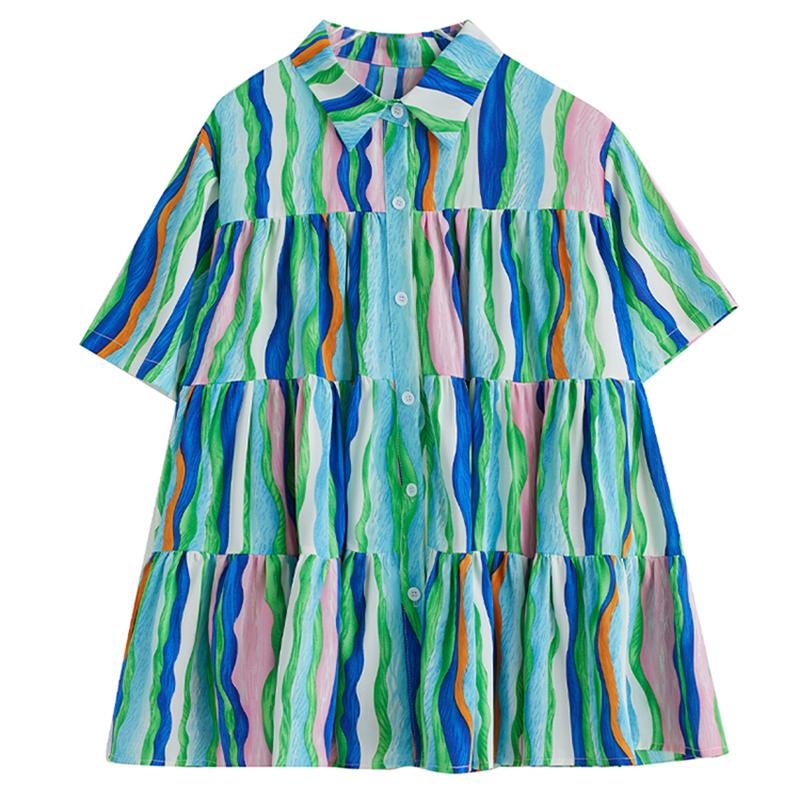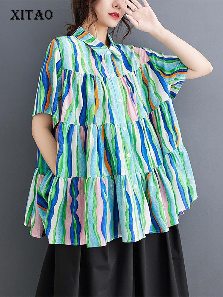 Xitao Женская полосатая рубашка с принтом в стиле пэчворк, новинка DMJ1407