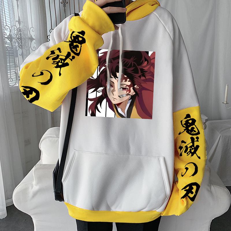 Популярные аниме Demon Slayer Tsugikuni Yoriichi толстовки с капюшоном зимний пуловер с принтом аниме для женщин и мужчин теплые удобные лоскутные толстовки