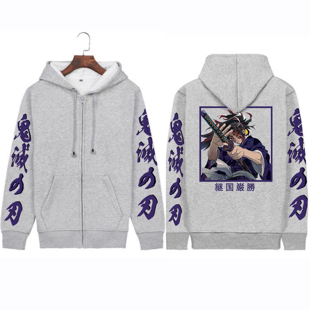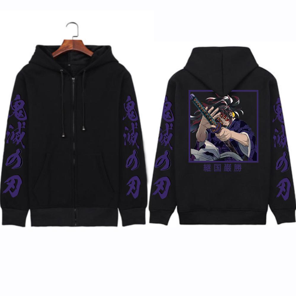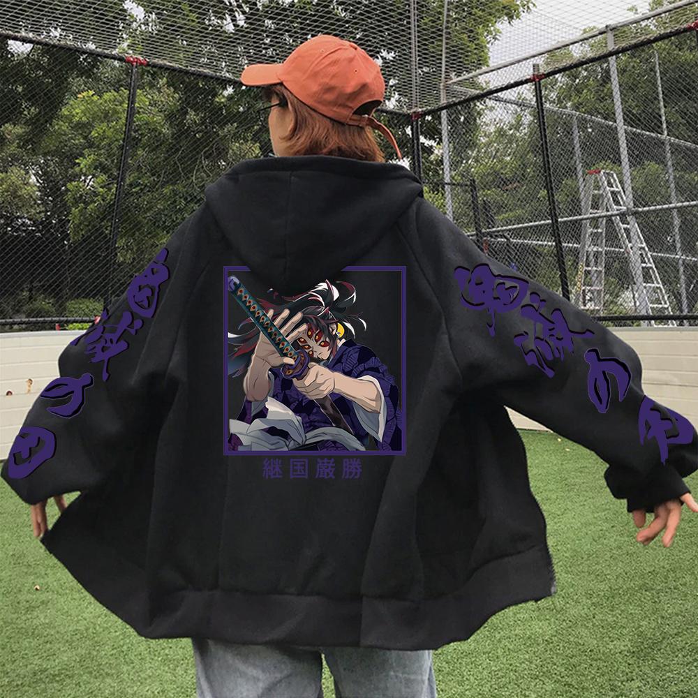 Толстовки на молнии «Demon Slayer Kokushibou» в стиле Харадзюку, популярные аниме для мужчин и женщин, винтажные креативные зимние теплые пальто с принтом большого размера, кофты
