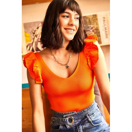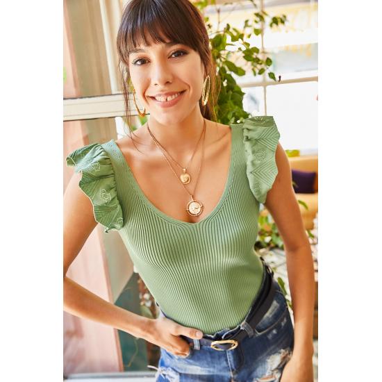 Женская трикотажная блузка с оборками спереди и сзади, V-образным вырезом и плечами