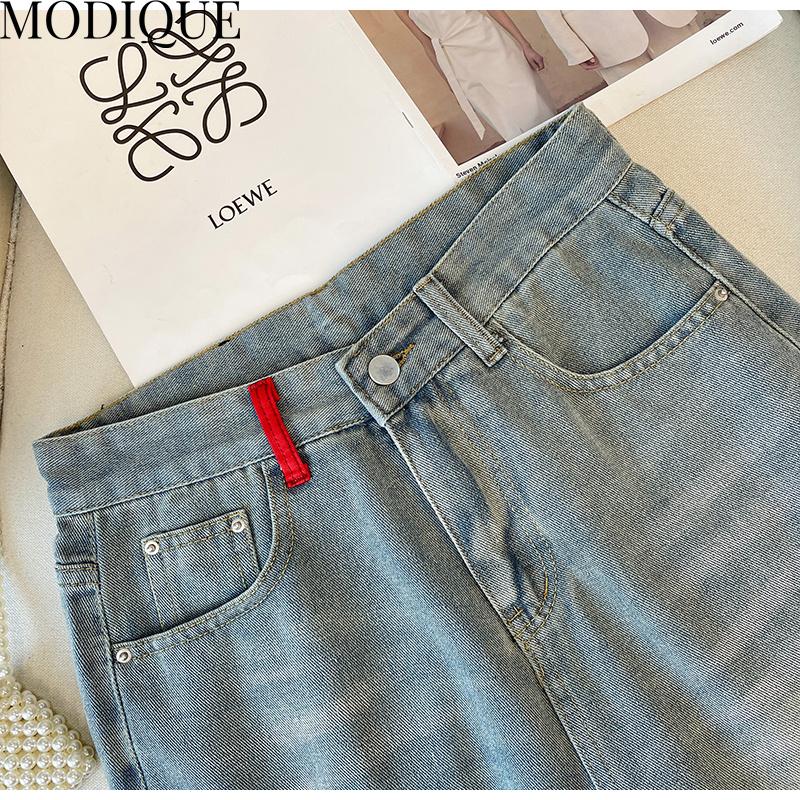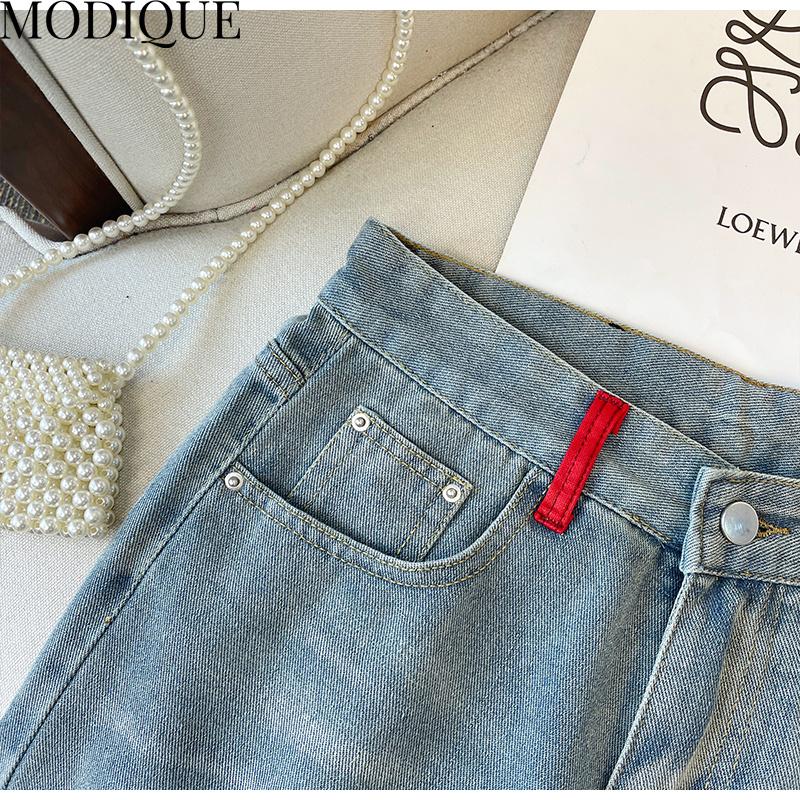 MODIQUE Летние джинсы больших размеров Короткие эластичные брюки Женские свободные прямые однотонные повседневные асимметричные милые женские базовые брюки с высокой талией