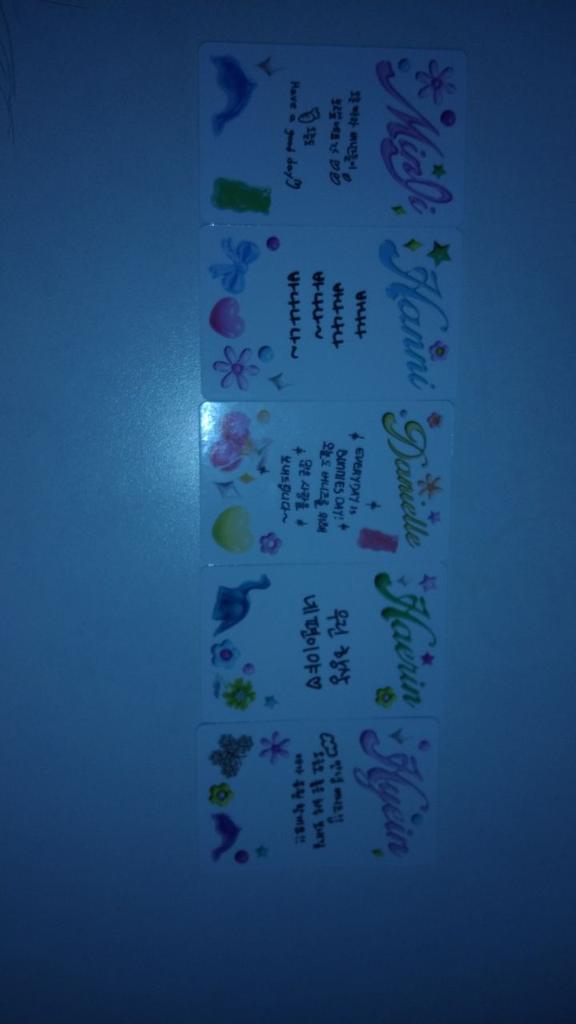 альбом очень хороший, за свою цену особенно, по скидке взяла за 6400 теңге (1300 руб и 540 гривен), а так альбом без скидки примерно за 8000 теңге, только до Казахстана ехало бесконечно долго, чуть меньше 2-ух месяцев, а ещё заказывала версию A, но прислали версию C, хотя она тоже неплохая. в подарок двух-сторонняя карта хэрин, с одной стороны она, а с другой вертикальные нью джинс от5 держут награду (?) полученную на VMA, первое фото полная комплектация, вторая задники почти всех карт девочек