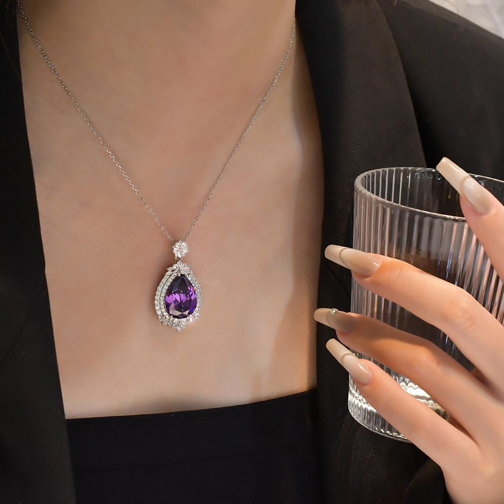 Ожерелье с фиолетовым бриллиантом в форме капли 13 * 18, серебро 925 пробы, элегантный темпераментный женский кулон с бриллиантами, цепочка на ключицу, Европа и Америка