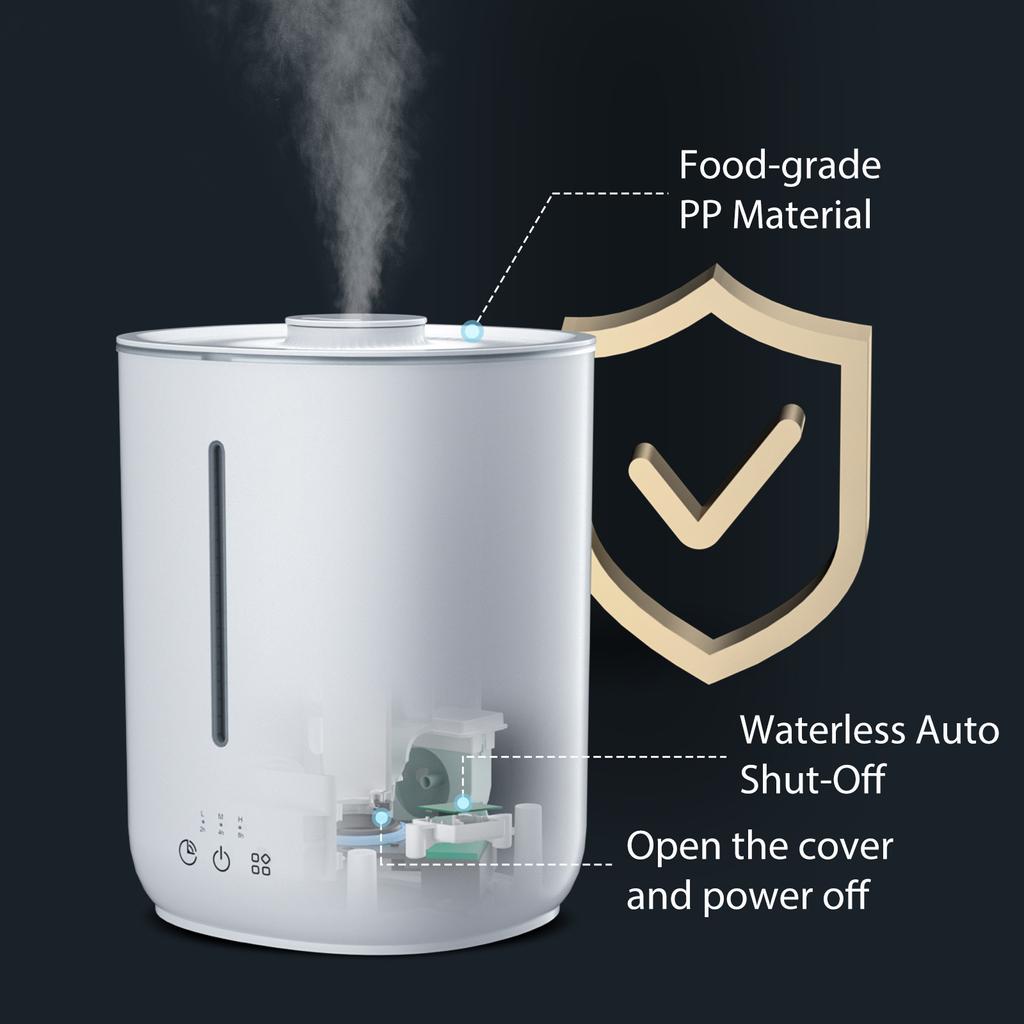 [Автоматическое отключение] Встроенная плата определения уровня воды, автоматическое отключение питания, когда в увлажнителе нет воды. Существуют также индукционные магниты, которые отключат питание, когда вы откроете верхнюю крышку.