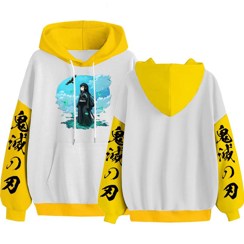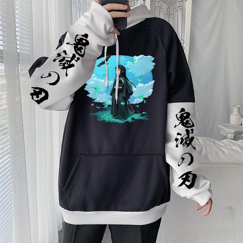 Аниме Tokitou Muichirou Demon Slayer толстовки с принтом Kawaii Trend с принтом и круглым вырезом с капюшоном, зимние теплые удобные толстовки