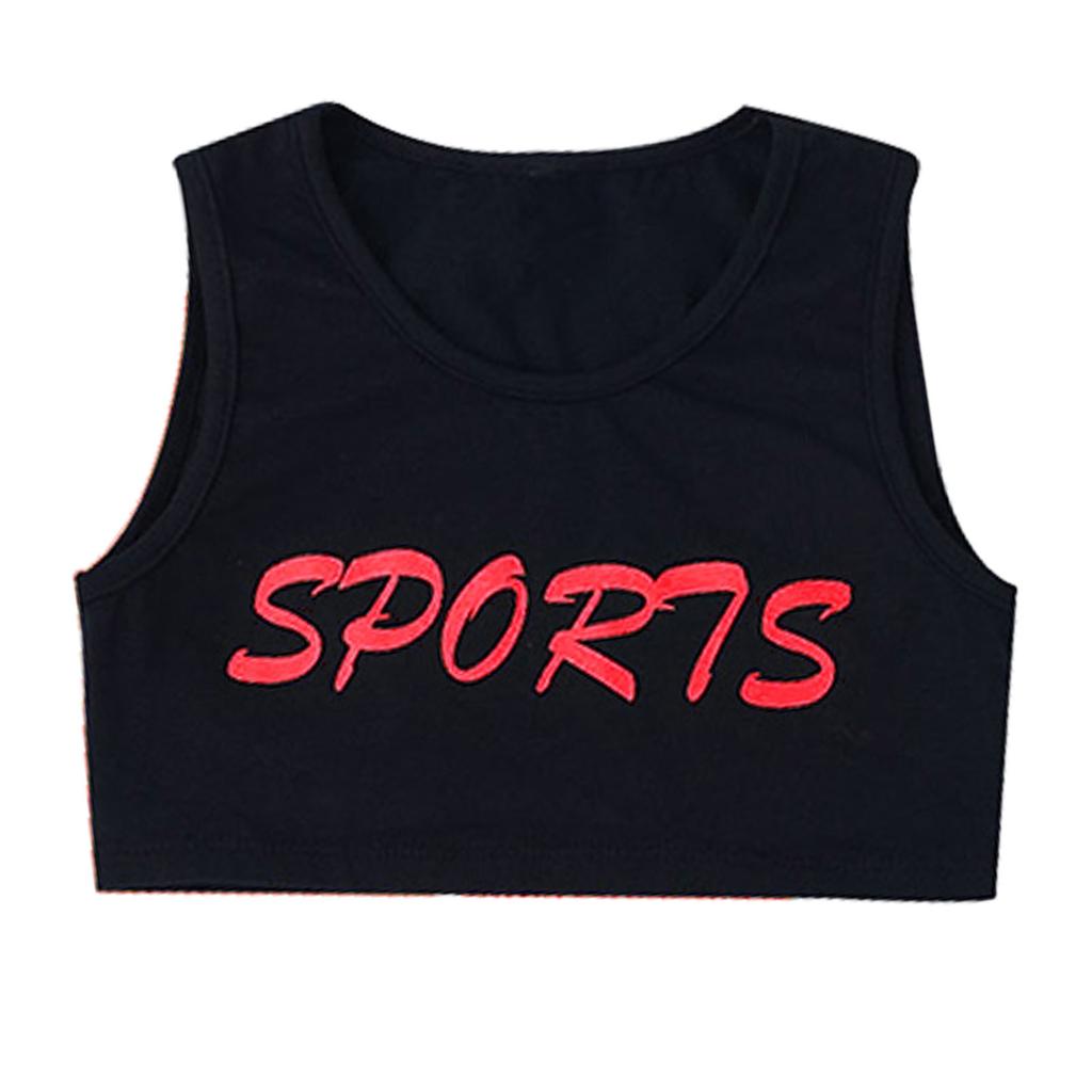 Детский костюм для джазовых танцев для девочек, укороченный топ без рукавов с круглым вырезом и буквенным принтом, жилет
