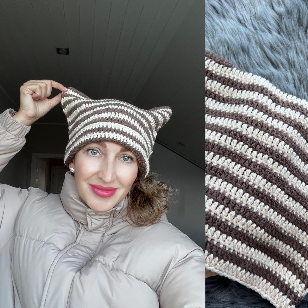 Шапка с ушками.😻 По ссылке очень много цветовых решений, есть из чего выбрать. Присмотрела эту шапку, когда еще не было отзывов))). Вижу, что не я одна) Честно говоря, эту шапку брала дочке, планировала что она будет носить ее осенью. Может, конечно это только мне так не повезло-но шапка большая, не только ребенку, но и мне тоже. Качество отличное- мягкая, комфортная. Состав-акрил с полиэстером. По теплу-осень. Вязка в один слой, рыхловатая. Ниток, запаха не было. Доставка достаточно быстрая- меньше месяца, что тоже хорошо. Модель интересная и смотрится отлично. Оценку снижать не стала. Планирую постирать, надеюсь подсядет) 🖤