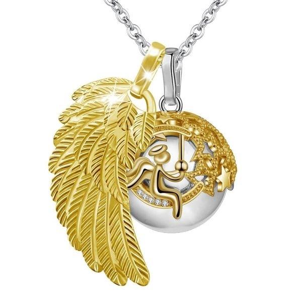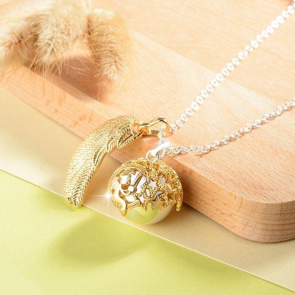 Золотое крыло ангела во время беременности и ангел на луне с кристаллами