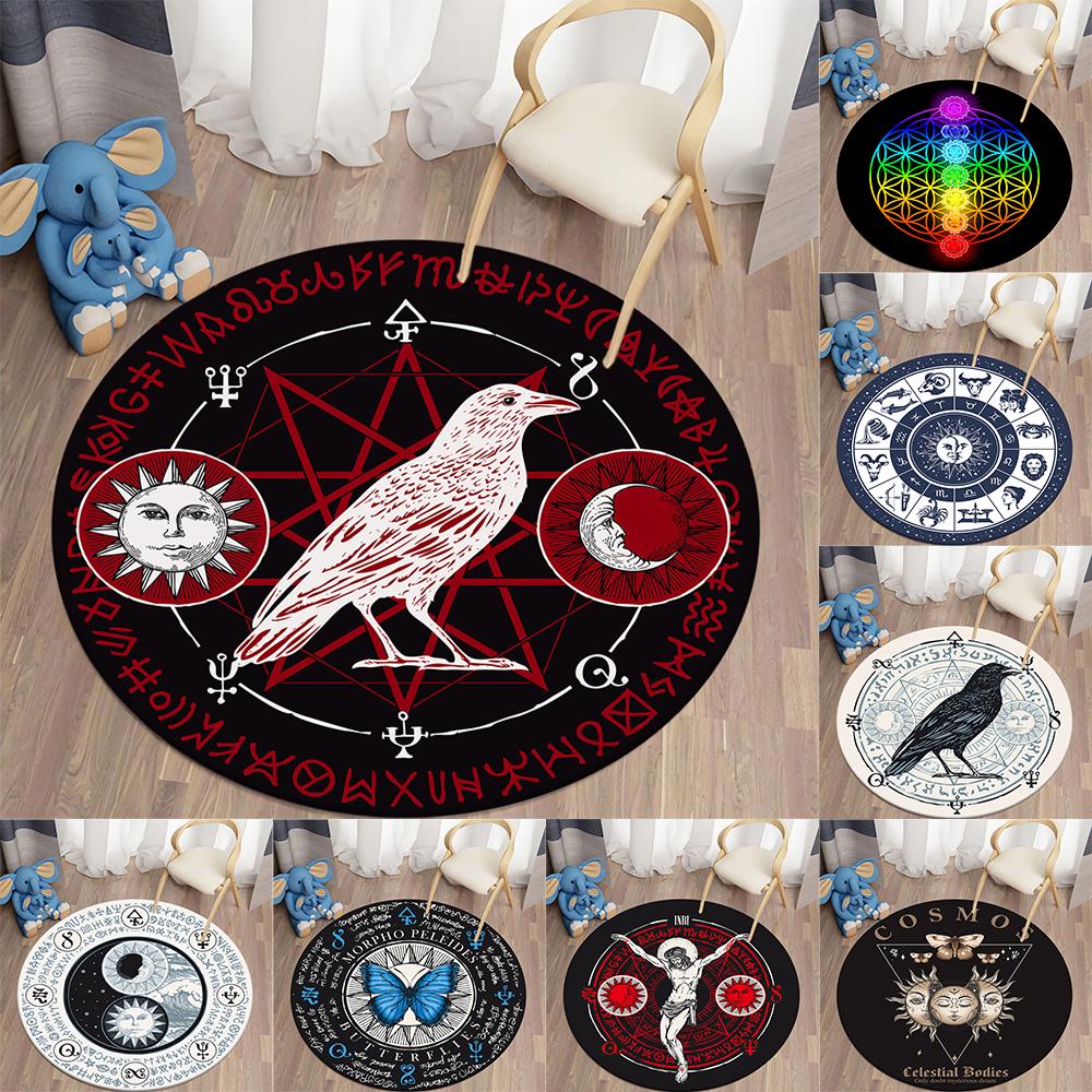 Круглый ковер для гостиной, коврик с загадочным принтом, винтажный детский напольный ковер для спальни, домашний декор, мягкий противоскользящий коврик