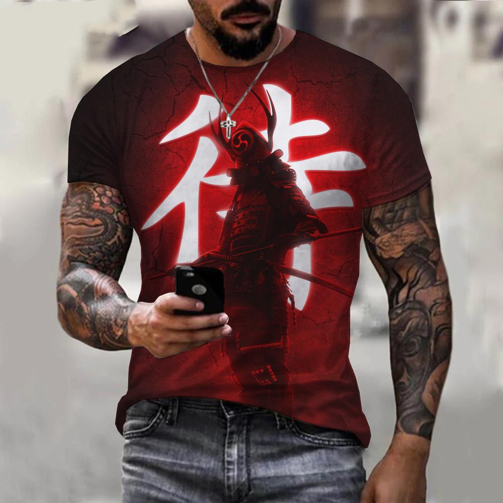 Футболка с 3D принтом японского самурая, мужская и женская модная футболка с коротким рукавом и круглым вырезом, уличная футболка в стиле Харадзюку, топы