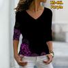 Женские осенние футболки с длинными рукавами с цветочным симметричным принтом подсолнечника, свободные футболки с v-образным вырезом размера плюс, топы, удобная блузка