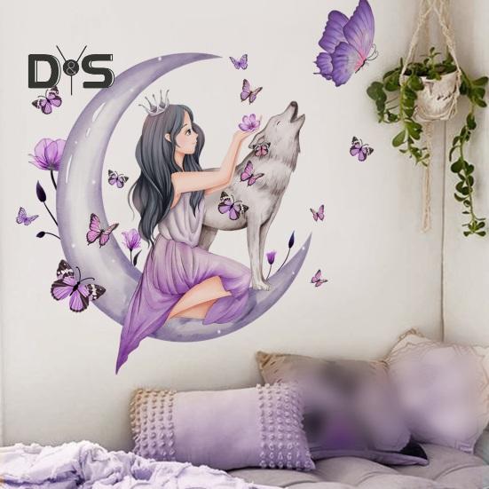 2 шт./компл. изысканные настенные художественные наклейки, съемные современные наклейки для девочек на стену с рисунком луны