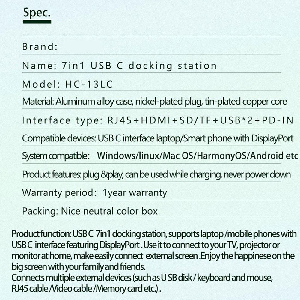 1 * 7-в-1 USB-C концентратор многопортовый адаптер