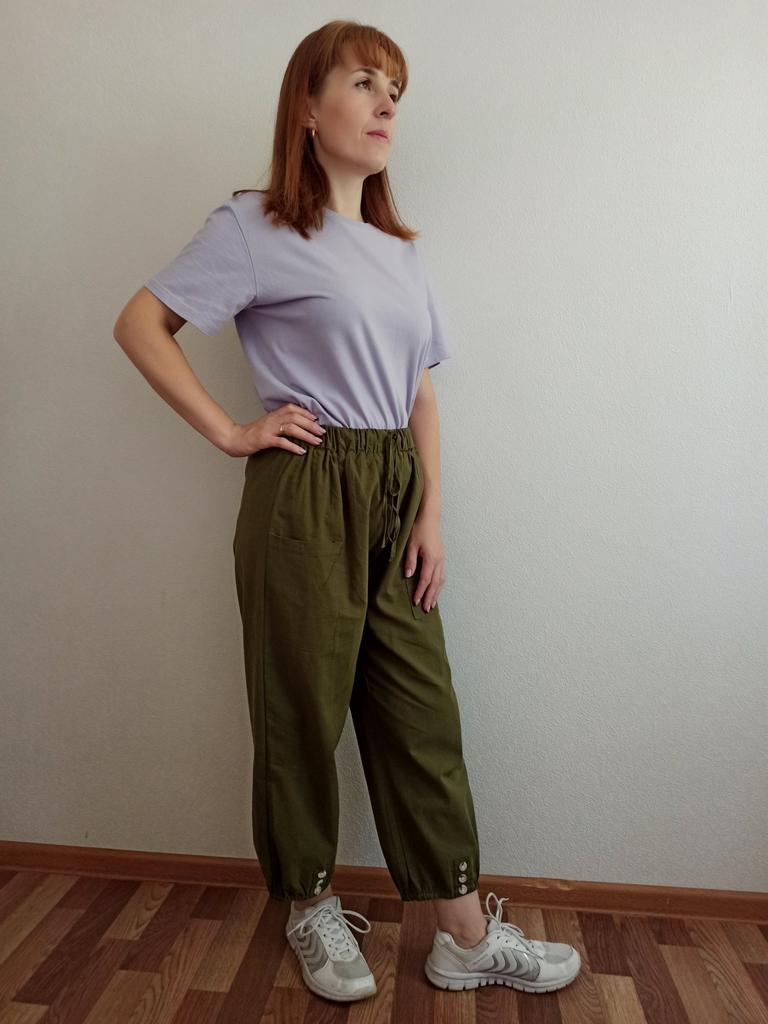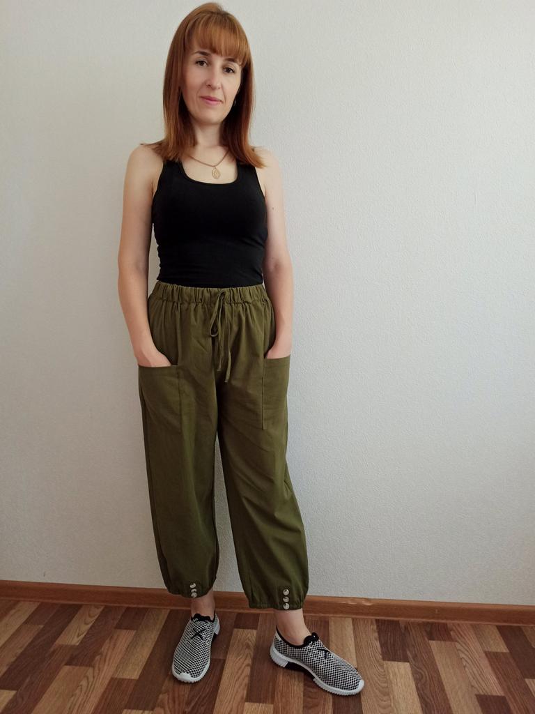 Женские летние брюки провереннего бренда CANVAUS В данному магазине заказываю уже не первый раз и всегда остаюсь довольной. На этот раз заказала летние брюки, у продавца они предоставлены аж в 10 цветах на выбор и с размерной сеткой: от S до 5XL. Цвет я заказывала - "армейский зелёный" - соответствует фото продавца. Размер L на параметры - 73/93см. и рост 164см. брюки сели отлично. Брюки пошиты из и приятного к телу материала - хлопчатобумажный лён. Пошив качественный: строчки ровные, были немного торчащие нитки, но для меня это не проблема. Брюки по талии на резинке и дополнительно вставлен шнурок. По низу брюк узкая резинка, не давит. По бокам накладные карманы. В брюках комфортно. Заказом довольная. Брюки и продавца могу смело рекомендовать! ⭐⭐⭐⭐⭐