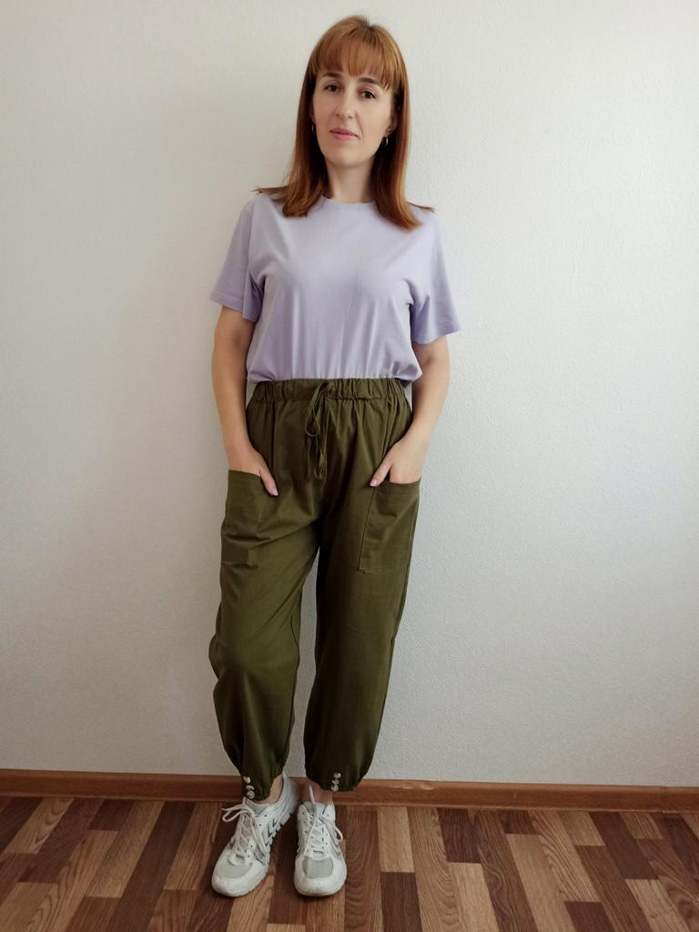 Если честно, ужасно расстроена и разочарована. Брала две пары штанишек и ни одни не соответствуют фото. Если говорить о данной модели- цвет несоответствует цвету на фото, в реальности они какие-то между тёмно серым и хаки, непонятный цвет. Внизу, слишком широкие , такая себе - аля баба казак, перешила.Карманы меньше в половину, реально непонимаю, у вас шо, с тканью такие проблемы, почему бы не сделать такие как на фото, к чему эти куцепердики - карманы ? Ткань в принципе - неплохая, на лето - самое то. По размеру брала с запасом и отлично сели, свободно как и должно быть на лето. А так смотрите сами, приходиться самой доводить их до ума.