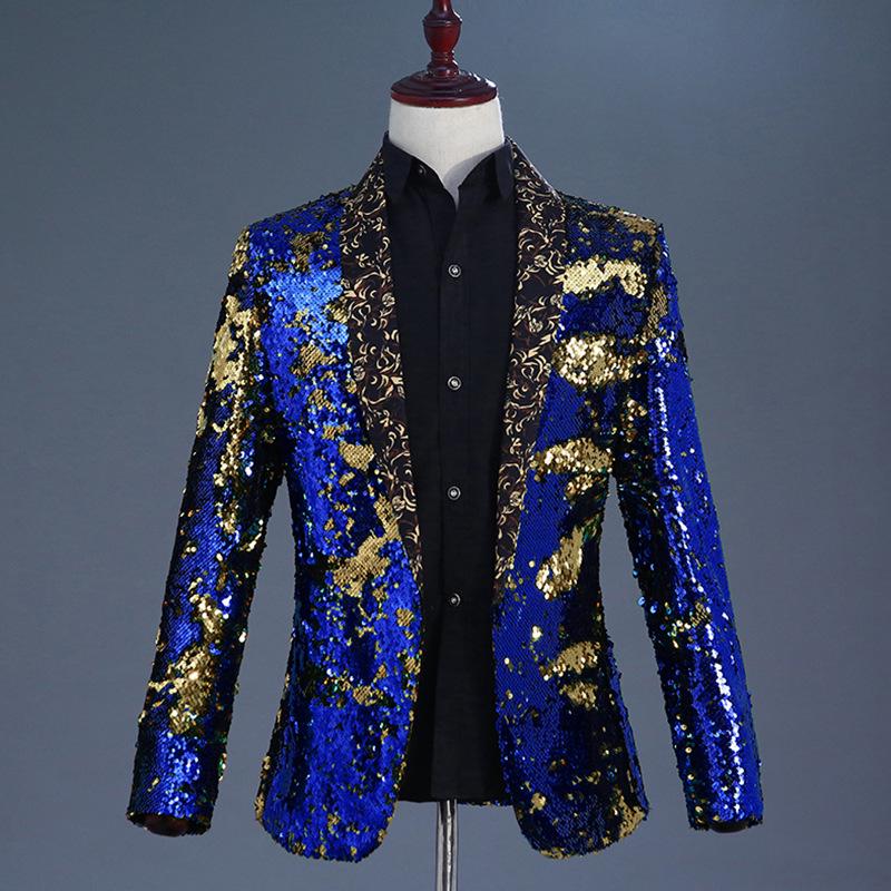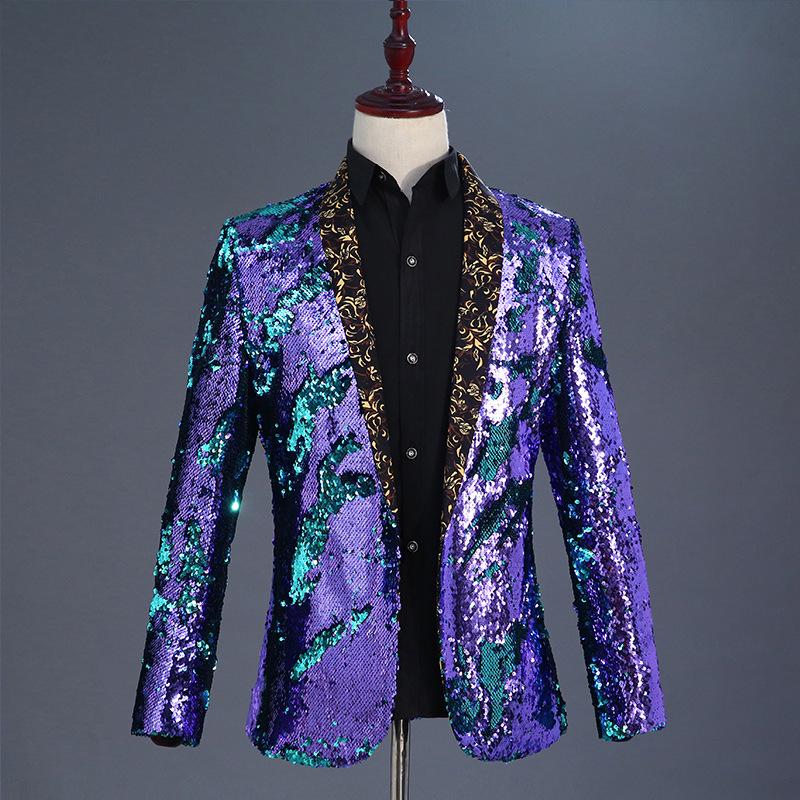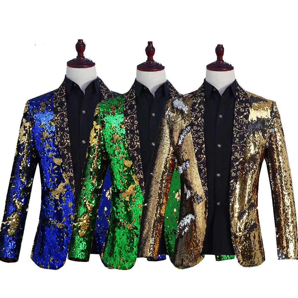 Мужской зеленый костюм с фруктовым воротником и блестками, сценический костюм, костюм для ночного клуба, бара, диджея, певицы, ведущий, нарядное платье, сценический костюм, пальто