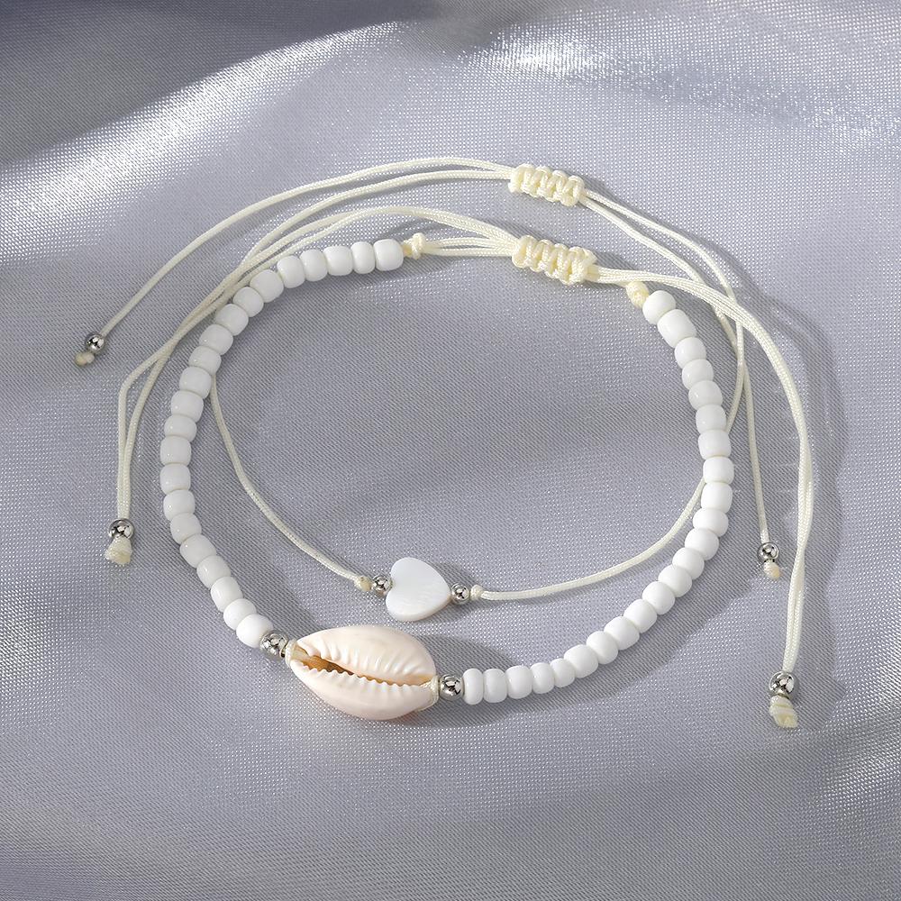Браслет из ракушки с белым жемчугом, круглая цепочка из бисера, набор ножных браслетов в богемном стиле, женский браслет-цепочка, сексуальный аксессуар