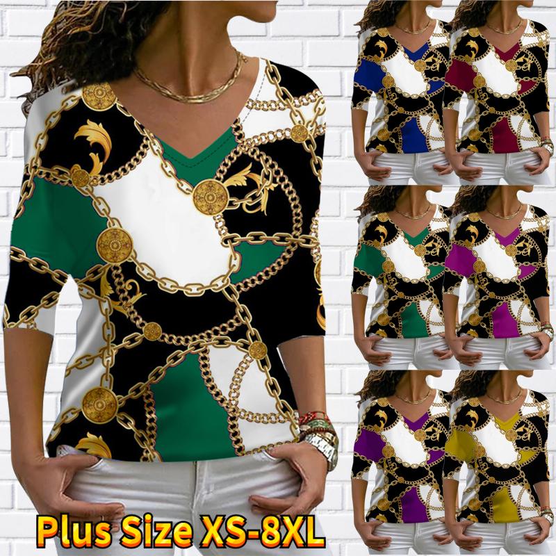 Женские осенние футболки с длинными рукавами с цветочным принтом и золотой цепочкой, свободные футболки с v-образным вырезом, большие размеры, топы, удобная блузка — купить товар онлайн с бесплатной доставкой по всему миру!