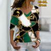 Женские осенние футболки с длинными рукавами с цветочным принтом и золотой цепочкой, свободные футболки с v-образным вырезом, большие размеры, топы, удобная блузка