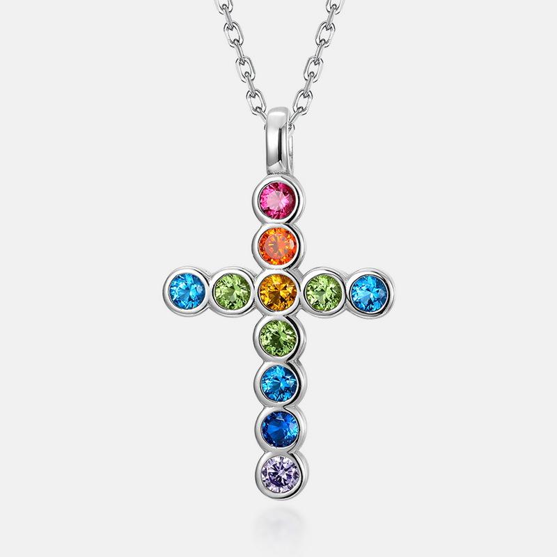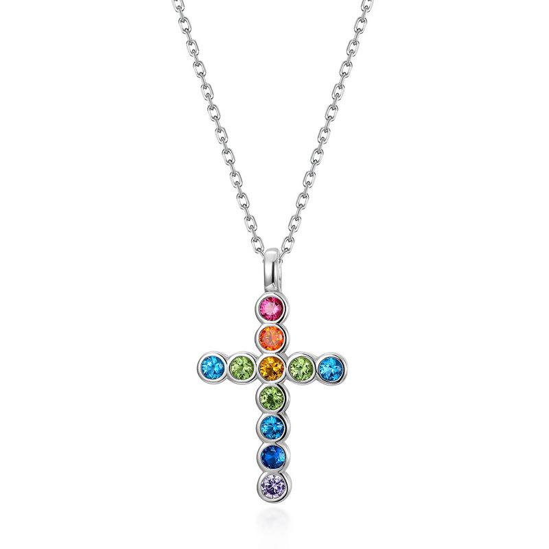 Ожерелье с подвеской в виде радужного креста S925, серебро, инкрустированное драгоценным цирконом ключицы