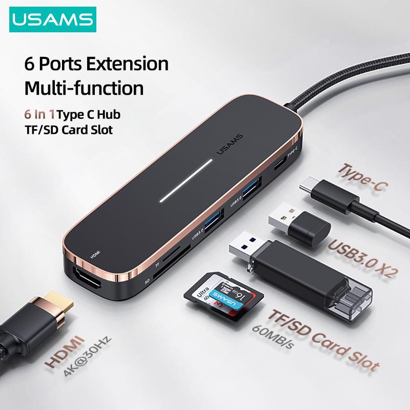 USAMS 6 в 1 PD 100 Вт Тип C Концентратор USB C-HDMI-совместимый 1,4 USB3.0 TF SD-слот Концентратор Разветвитель док-станции Адаптер-концентратор 5 в 1 для ноутбука MacBook IPad — купить товар онлайн с бесплатной доставкой по всему миру!