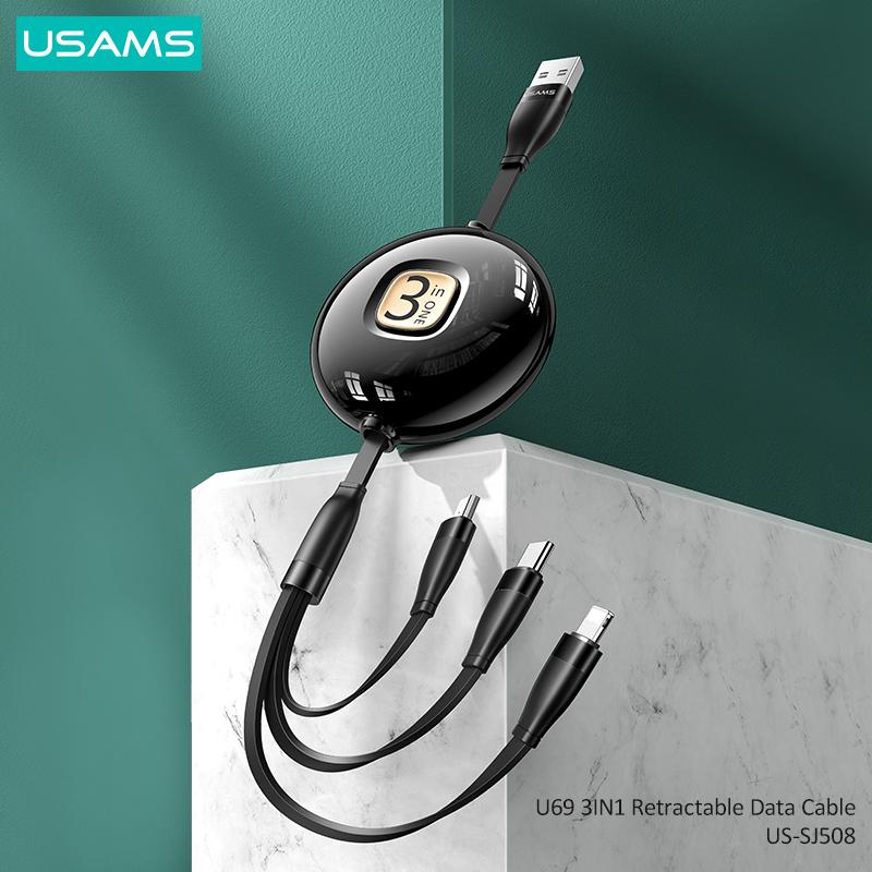 USAMS USB-кабель для зарядки 1 м 3 в 1 для iPhone, кабель Micro USB типа CData, выдвижной дизайн, USB-кабели для телефонов, аксессуары для телефонов