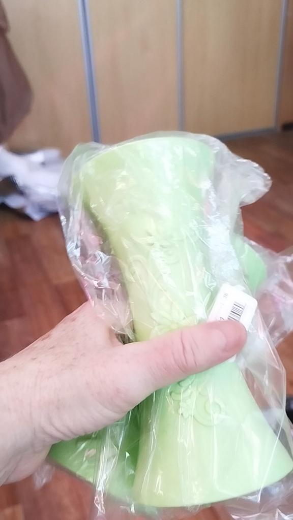 Вазочка конечно малюсенькая,пластиковая..в низу вставлен кружок поэтому воду в нее не зальешь..только под исскуственные цветочки.😏