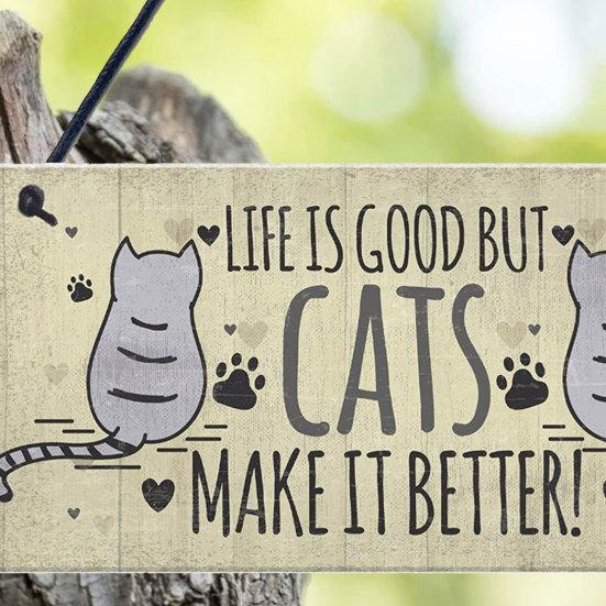 Деревянная табличка для кошек, подвесной дизайн со следами кошек, принт котенка, забавные подвесные таблички для дома кошек для домашних животных