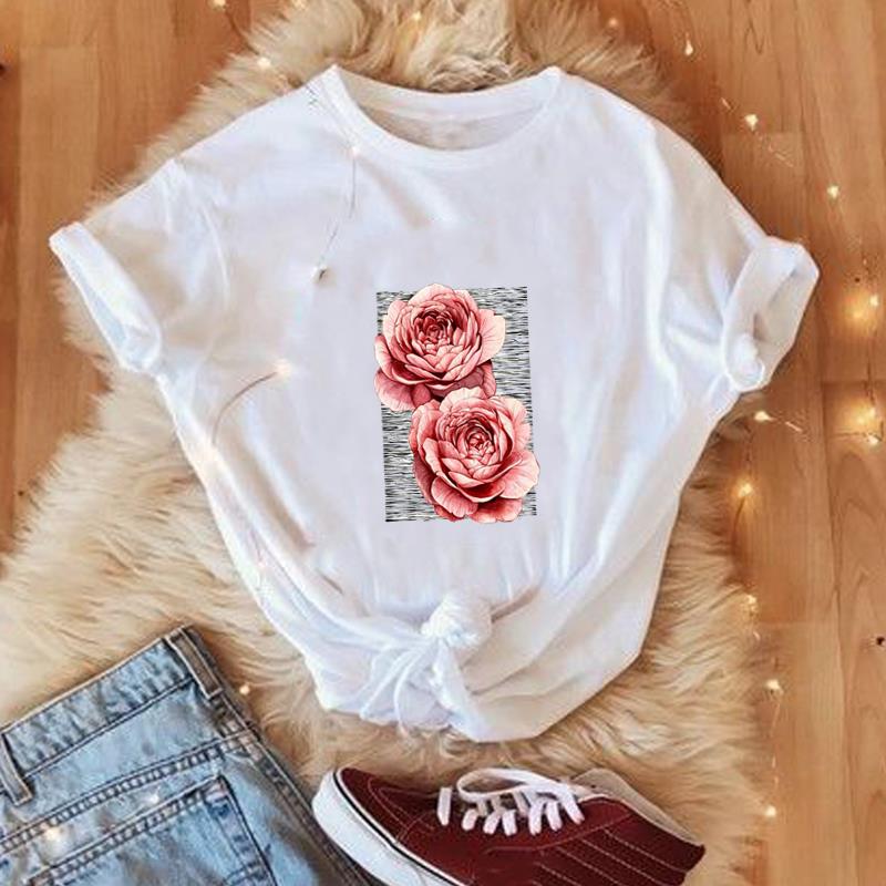 Футболка с азиатским размером и принтом, летний топ с цветочным принтом и буквами, милая футболка с рисунком, повседневная женская женская футболка с героями мультфильмов, женская мода, футболка с коротким рукавом