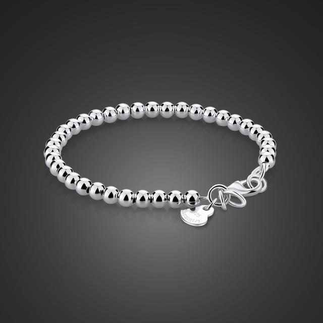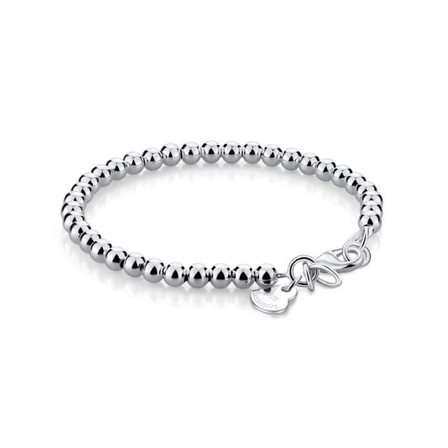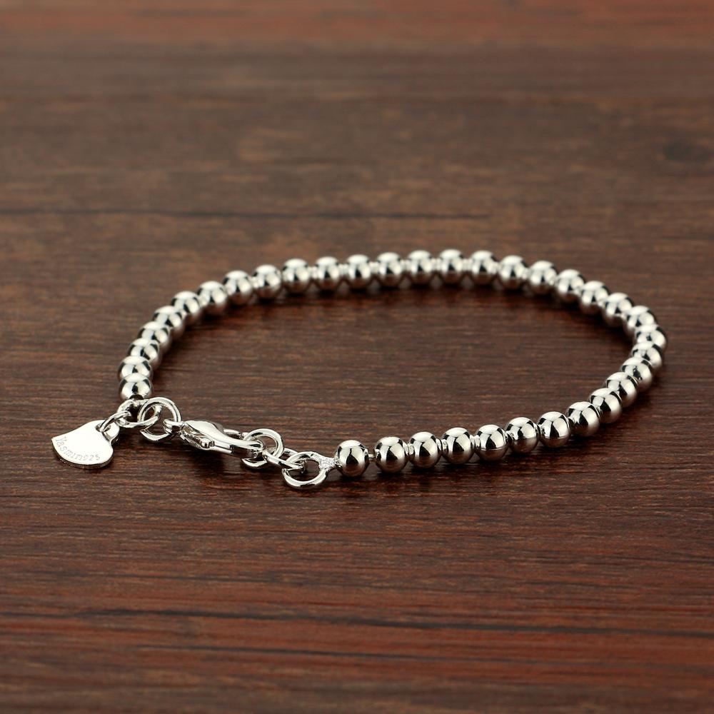 Браслет из 100% стерлингового серебра 925 пробы с бусинами для женщин, однотонный серебряный браслет для девочек и детей, ювелирные изделия для родителей и детей