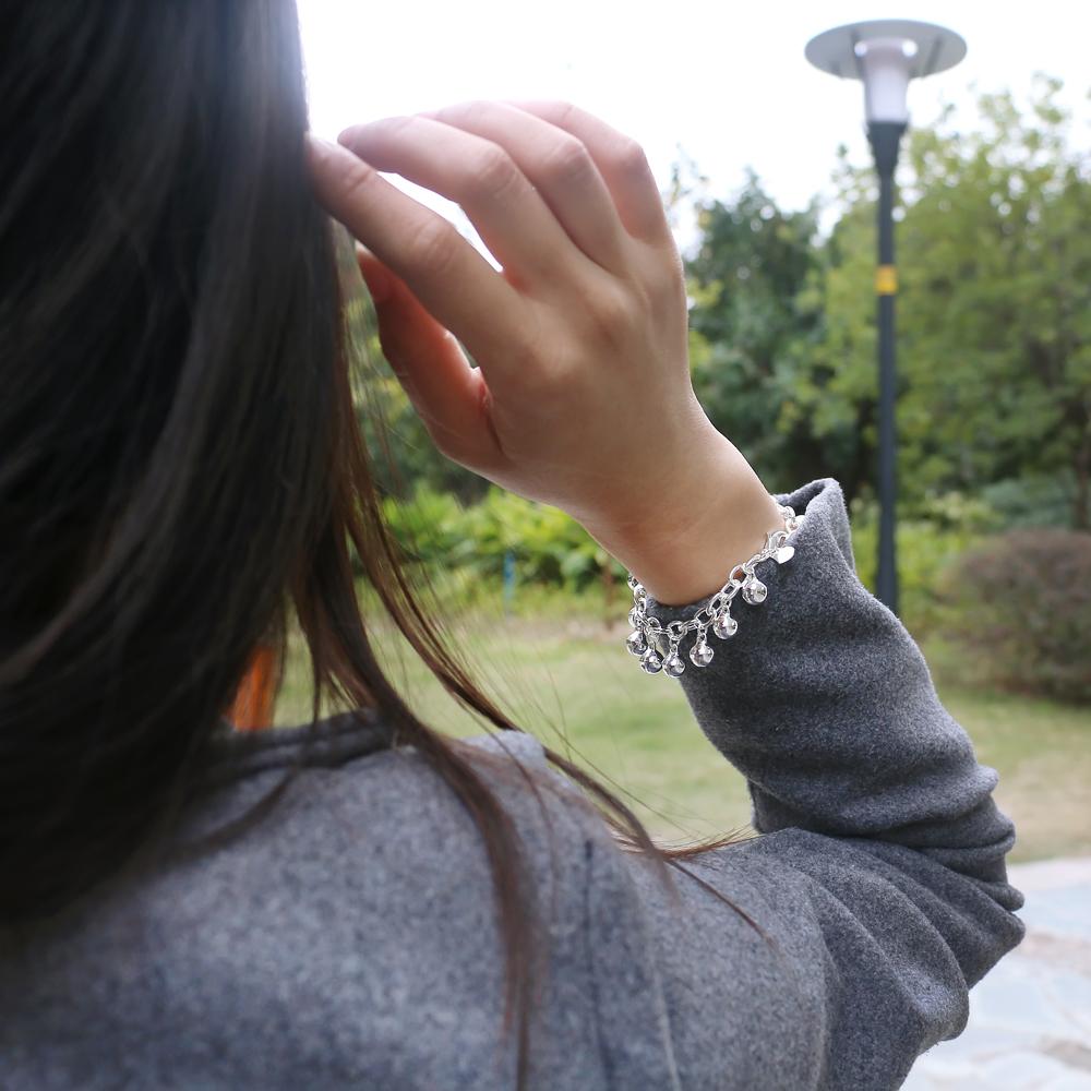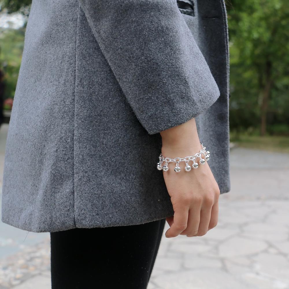 Модный женский браслет из 100% стерлингового серебра 925 пробы, однотонные серебряные браслеты с колокольчиками для девочек, милый браслет, очаровательные женские украшения для девочек