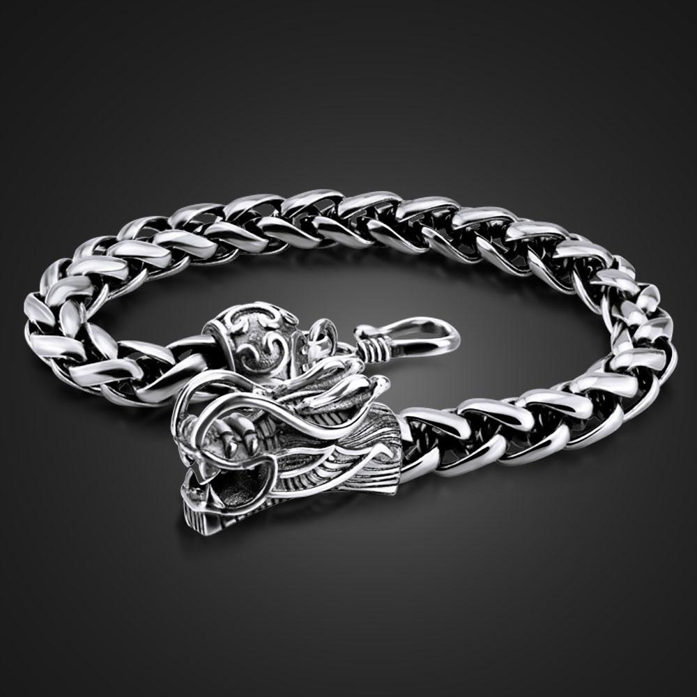 Ретро модный мужской тайский серебряный браслет из стерлингового серебра 925 пробы шириной 8 мм20 см, настоящий однотонный серебряный браслет с драконом, мужские ювелирные изделия