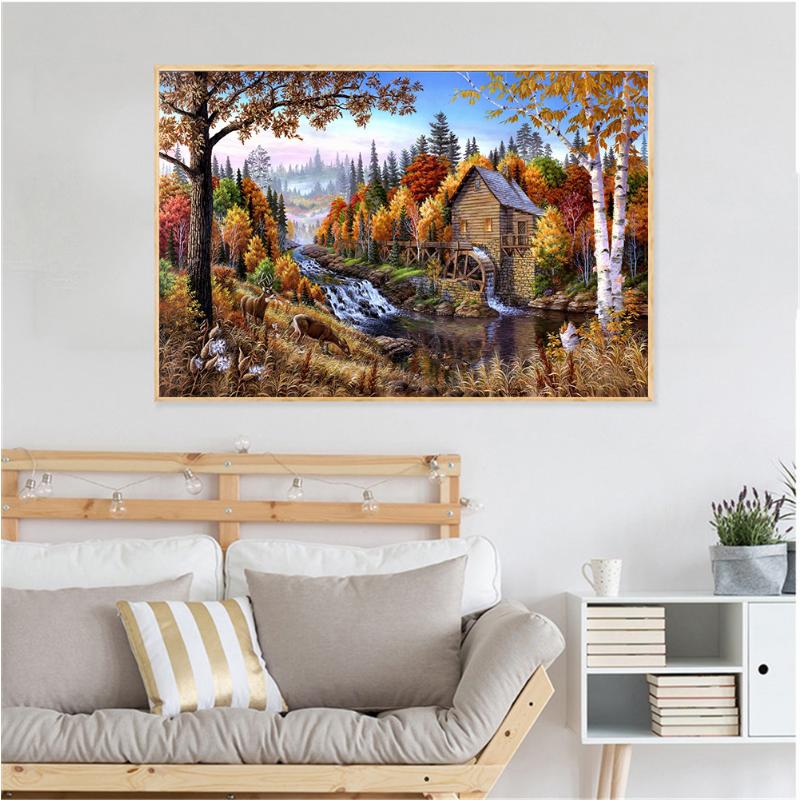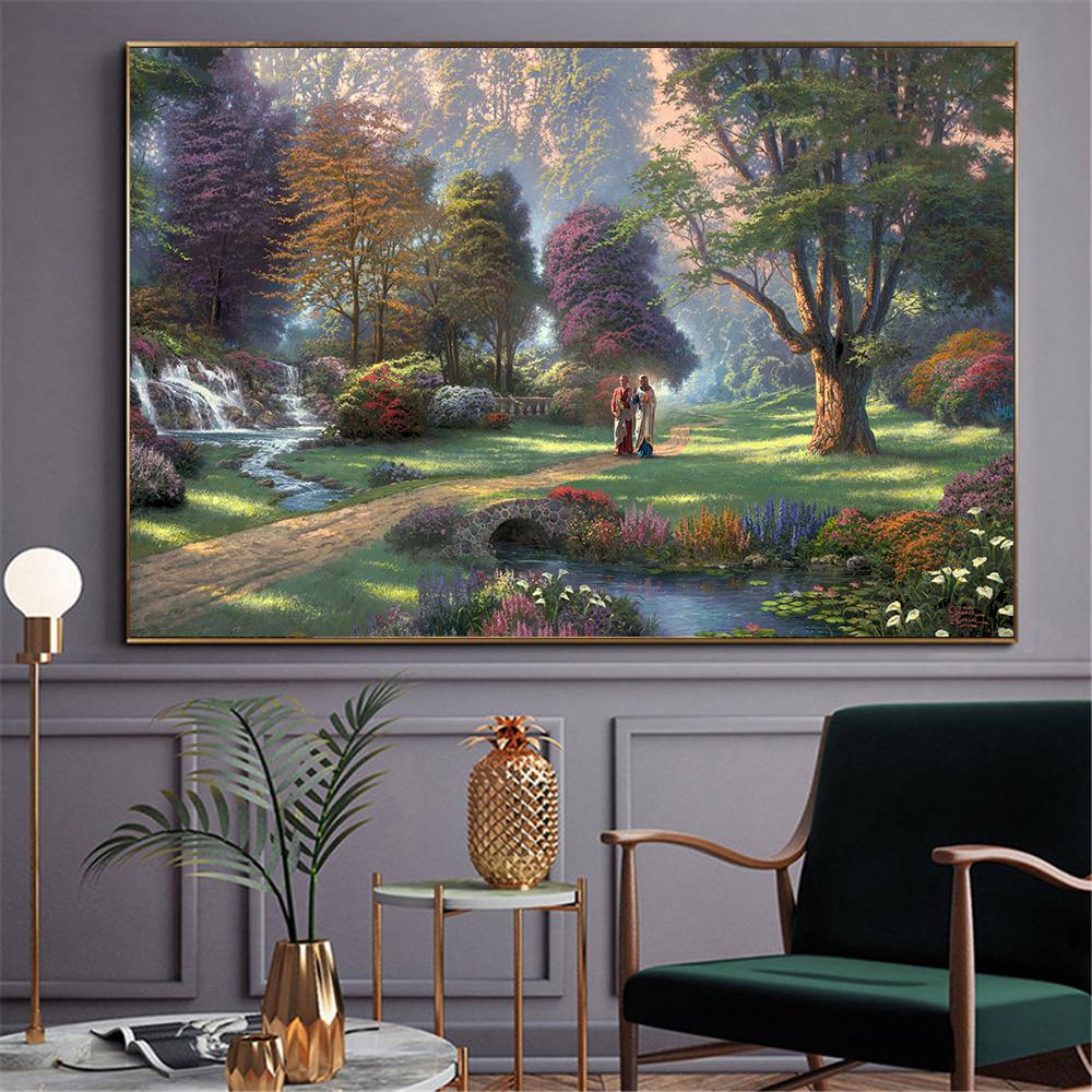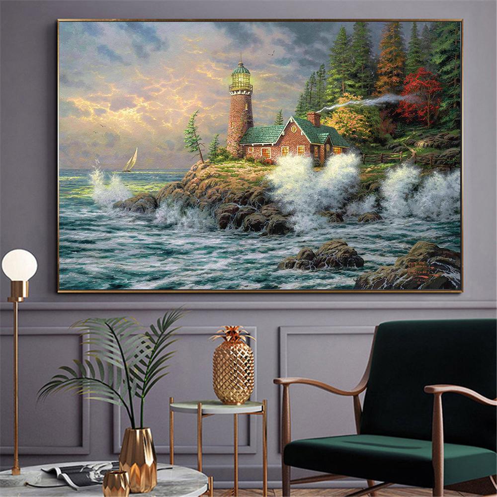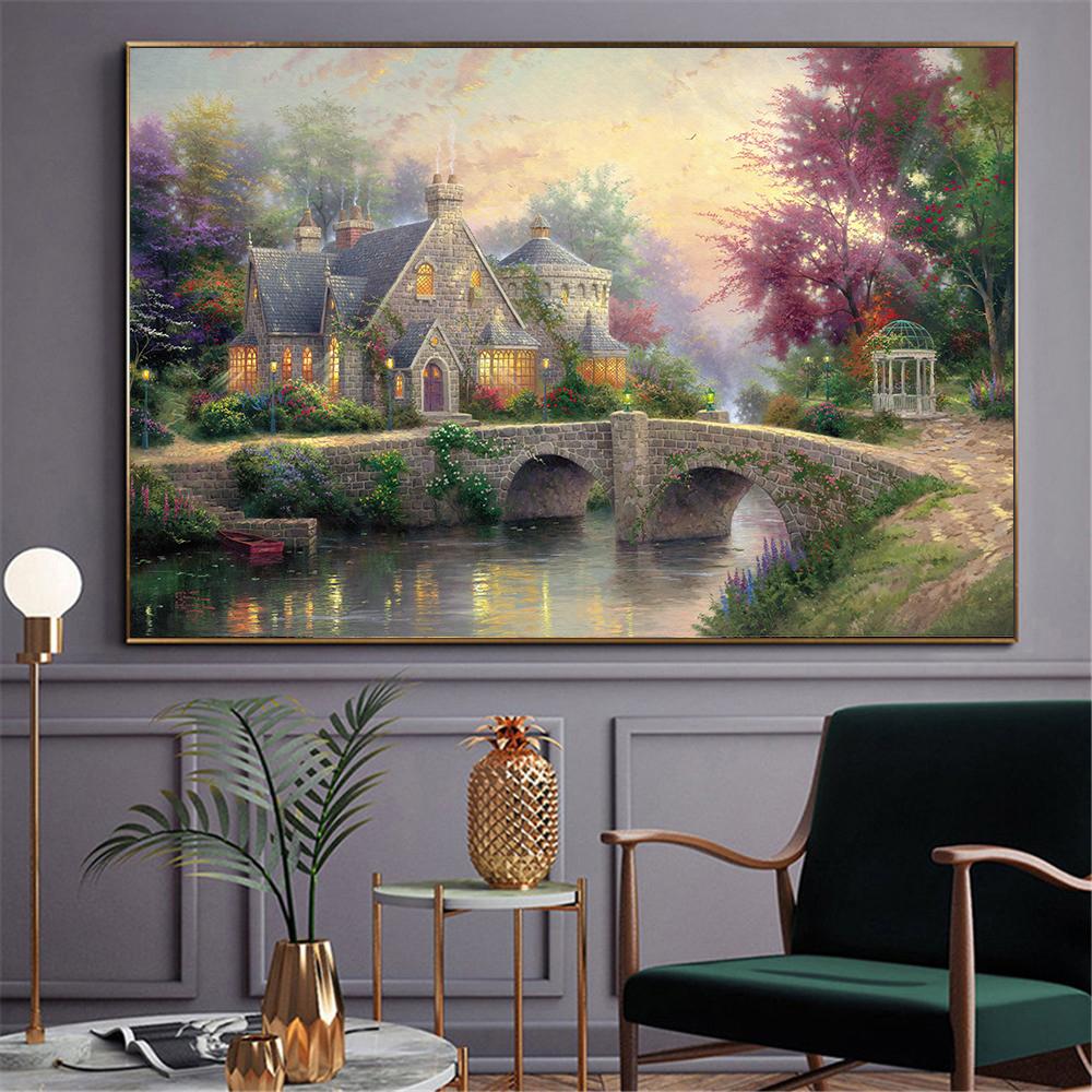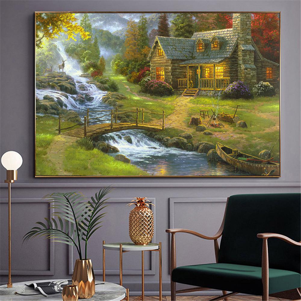 Новая абстрактная картина маслом, печать на холсте, горный пейзаж, постеры и принты, настенный декор, лампа, природа, дом, коттедж