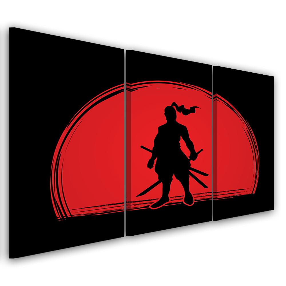 Картина из трех частей, печать на холсте, Самурай, Япония, Солнце