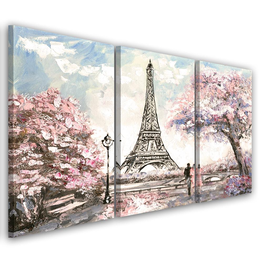 Картина на холсте из трех частей Эйфелева башня Пастельно-розовый