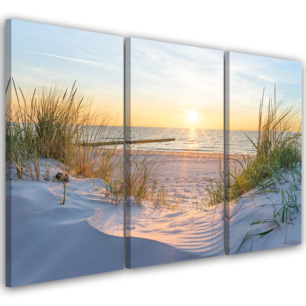Картина из трех частей, печать на холсте, пляж, море, дюны, закат