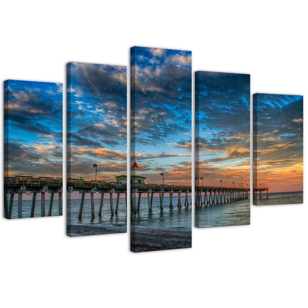 Five piece picture canvas print Sunset Pier