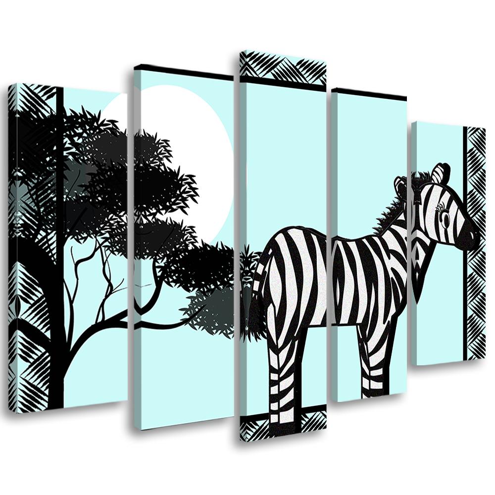 Картина из пяти предметов на холсте Зебра Сафари Синий — купить товар онлайн с бесплатной доставкой по всему миру!