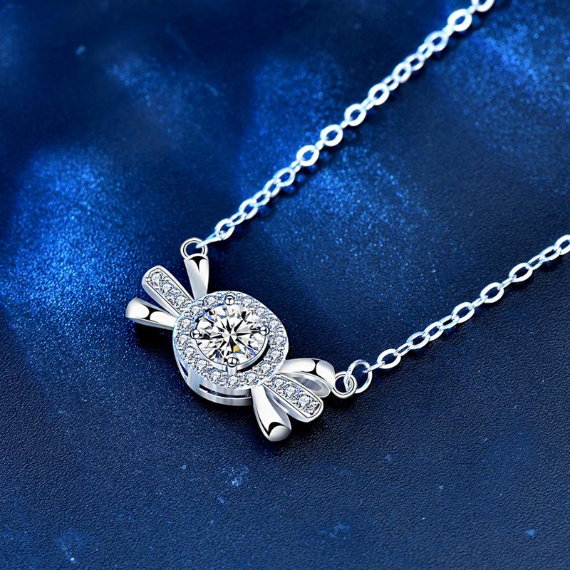 Женское ожерелье с бриллиантом из стерлингового серебра 925 пробы, подвеска в форме конфеты, простое колье-чокер с ключицей, ювелирные изделия, новинка