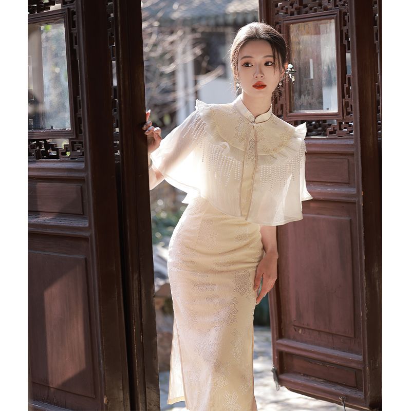 Улучшенное повседневное кружевное платье Cheongsam из двух частей в китайском стиле
