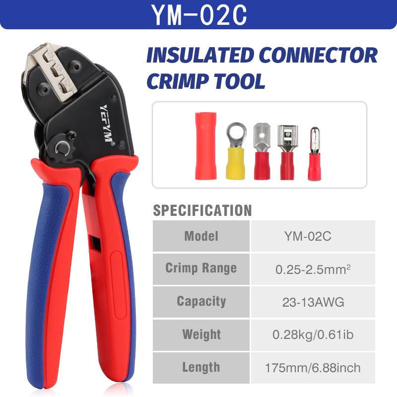 Инструмент для щипцов проводов, щипцы для изолированных клемм с храповым механизмом для проводов 23–13 AWG, доступны для изолированных нейлоновых разъемов и разъемов электрических проводов