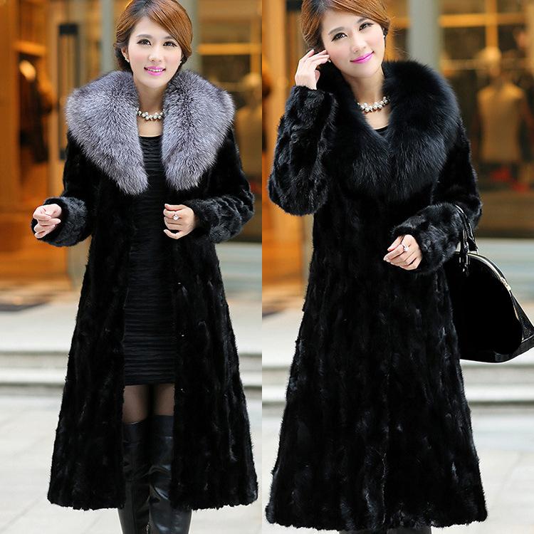 Женская осенне-зимняя шуба из искусственного меха, длинная шуба из искусственного норкового меха, воротник из искусственного лисьего меха, большое женское платье — купить товар онлайн с бесплатной доставкой до всему миру!