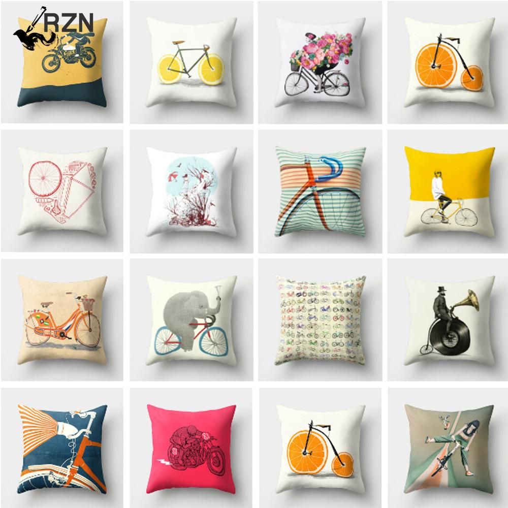 Полиэстеровая наволочка с велосипедным принтом, мультяшное искусство, абстрактная велосипедная подушка, автомобильный домашний диван, квадратная декоративная наволочка 45X45 см — купить товар онлайн с бесплатной доставкой по всему миру!