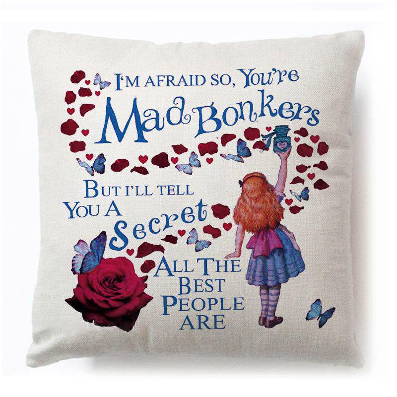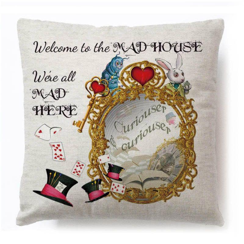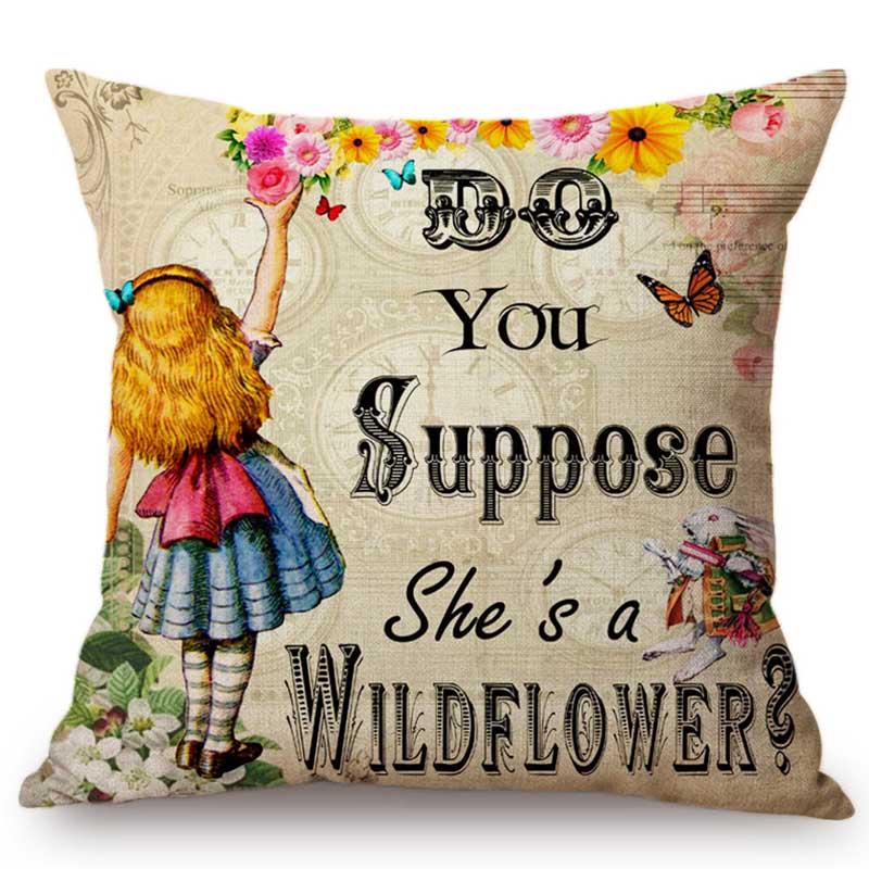 Наволочка с рисунком «Алиса в стране чудес» с милым кроликом и принтом кошки, декоративная подушка для дома, винтажная домашняя декоративная хлопковая льняная наволочка