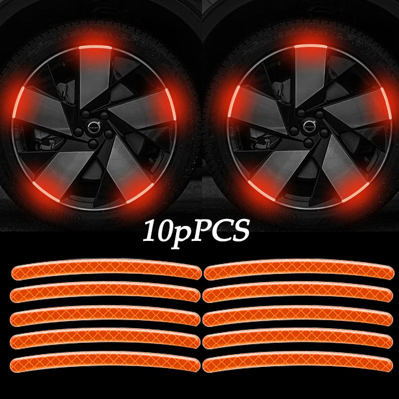 10 шт., светоотражающая наклейка на ступицу колеса автомобиля, обод шины, светоотражающие полосы, светящиеся для ночного вождения, колесо автомобиля, велосипеда, мотоцикла