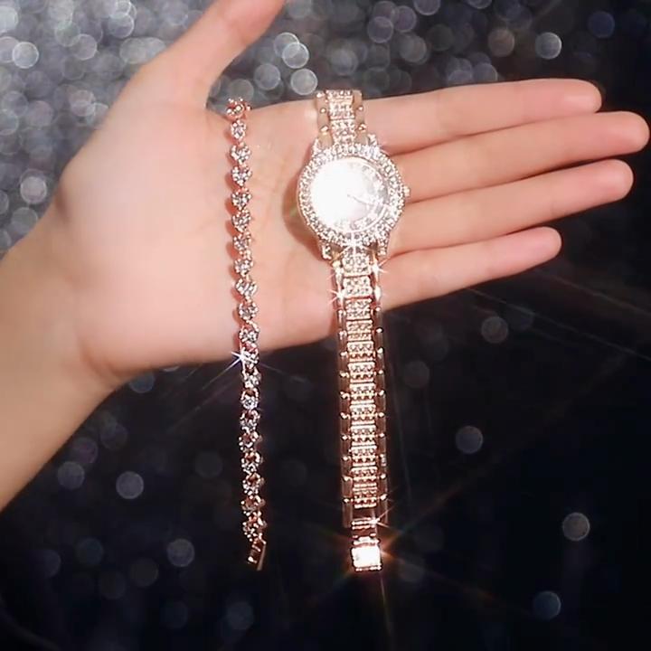 Женские часы с бриллиантами, золотые часы, женские наручные часы, элитный бренд, женские часы-браслет со стразами, женские кварцевые часы