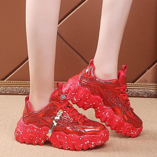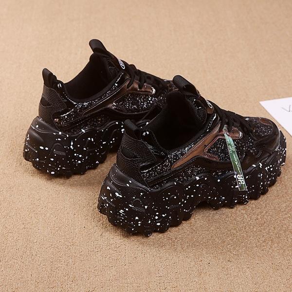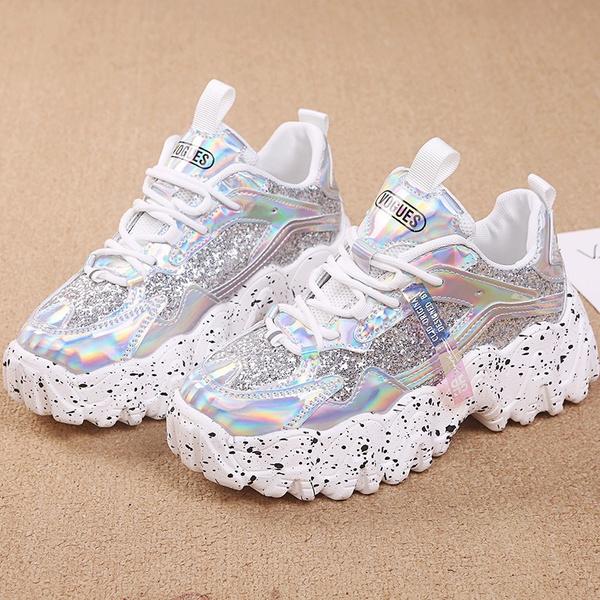 Массивные кроссовки женские блестящие туфли высокого качества на платформе на плоской подошве повседневные прогулочные кроссовки